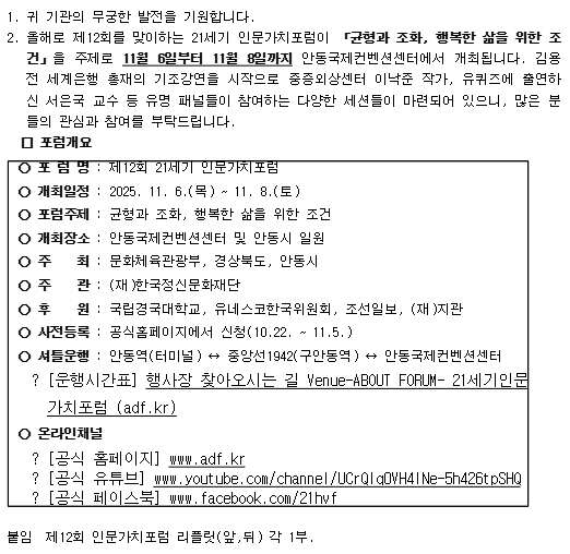제12회 21세기 인문가치포럼 개최 알림