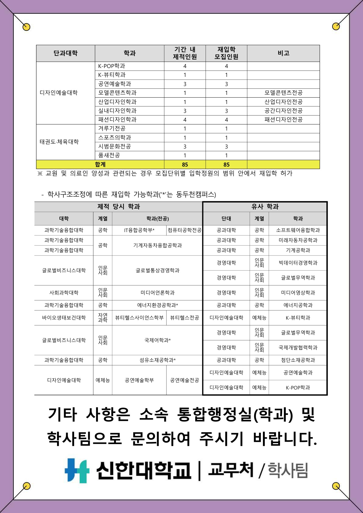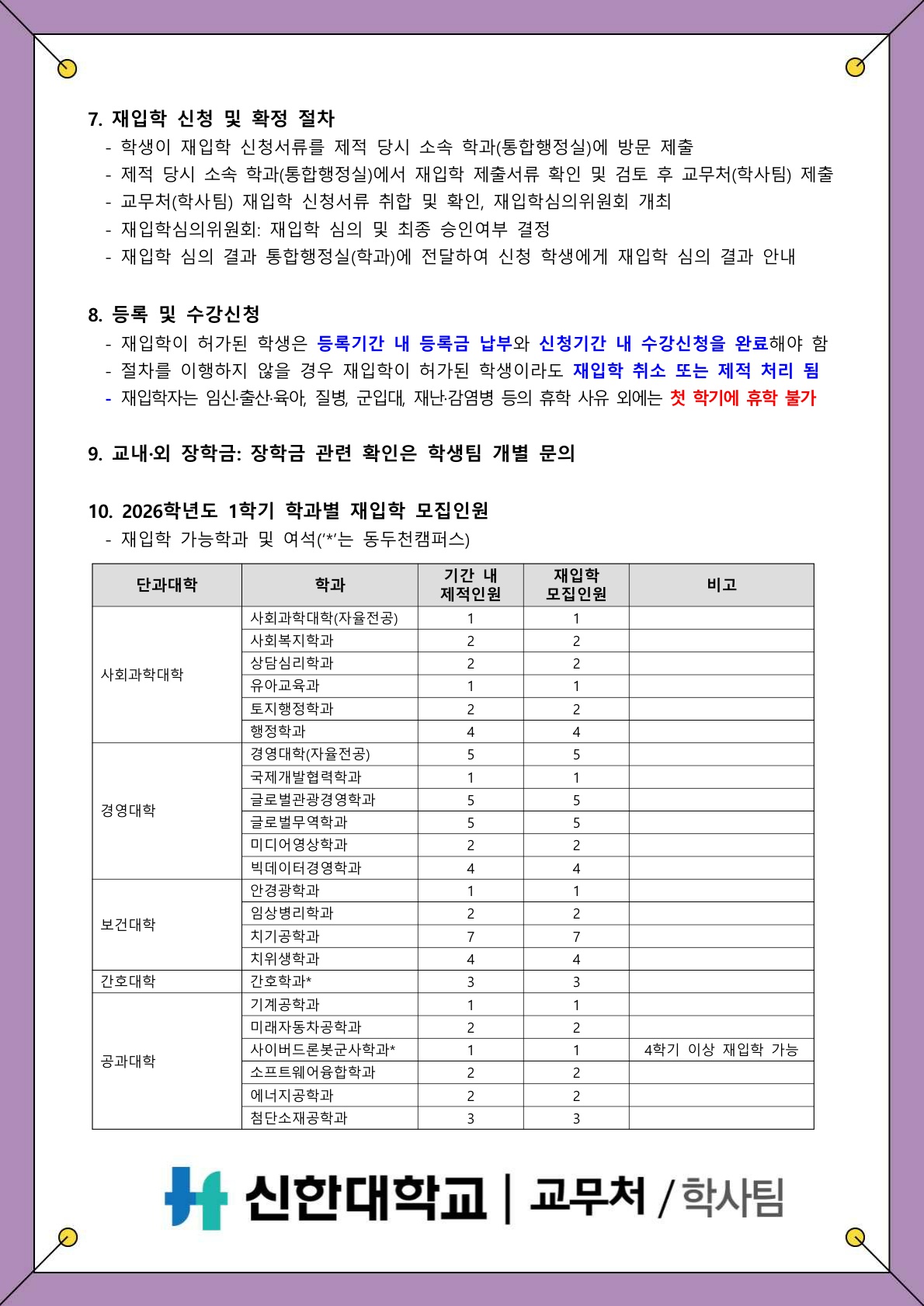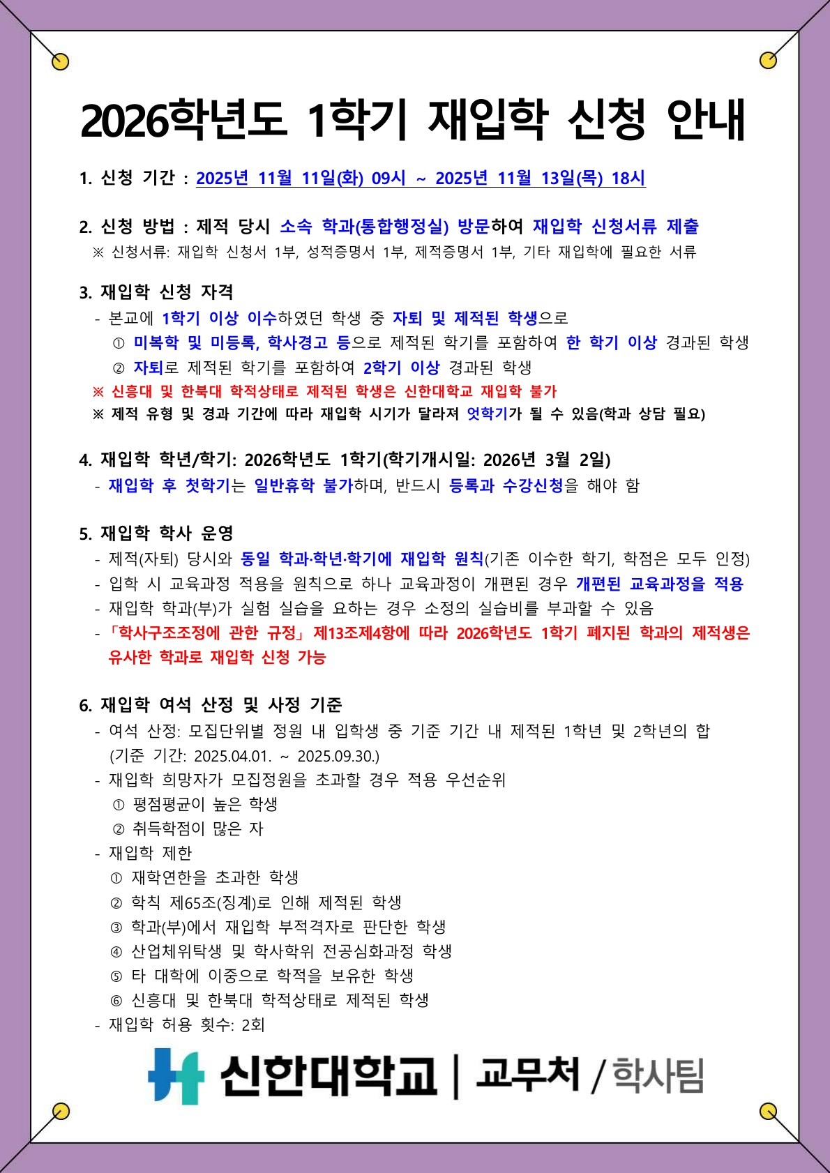 [학사팀/학적] 2026학년도 1학기 재입학 신청 안내