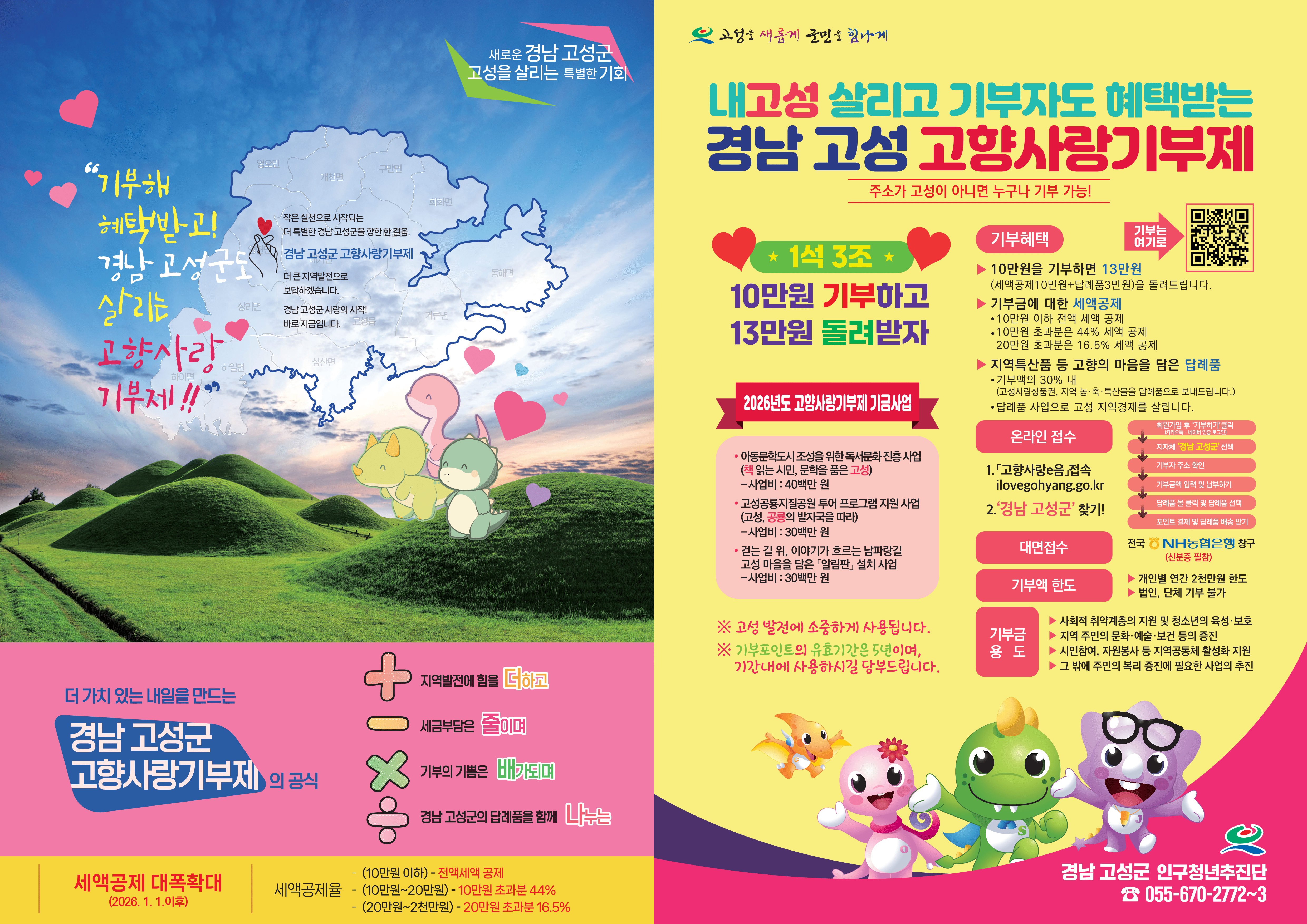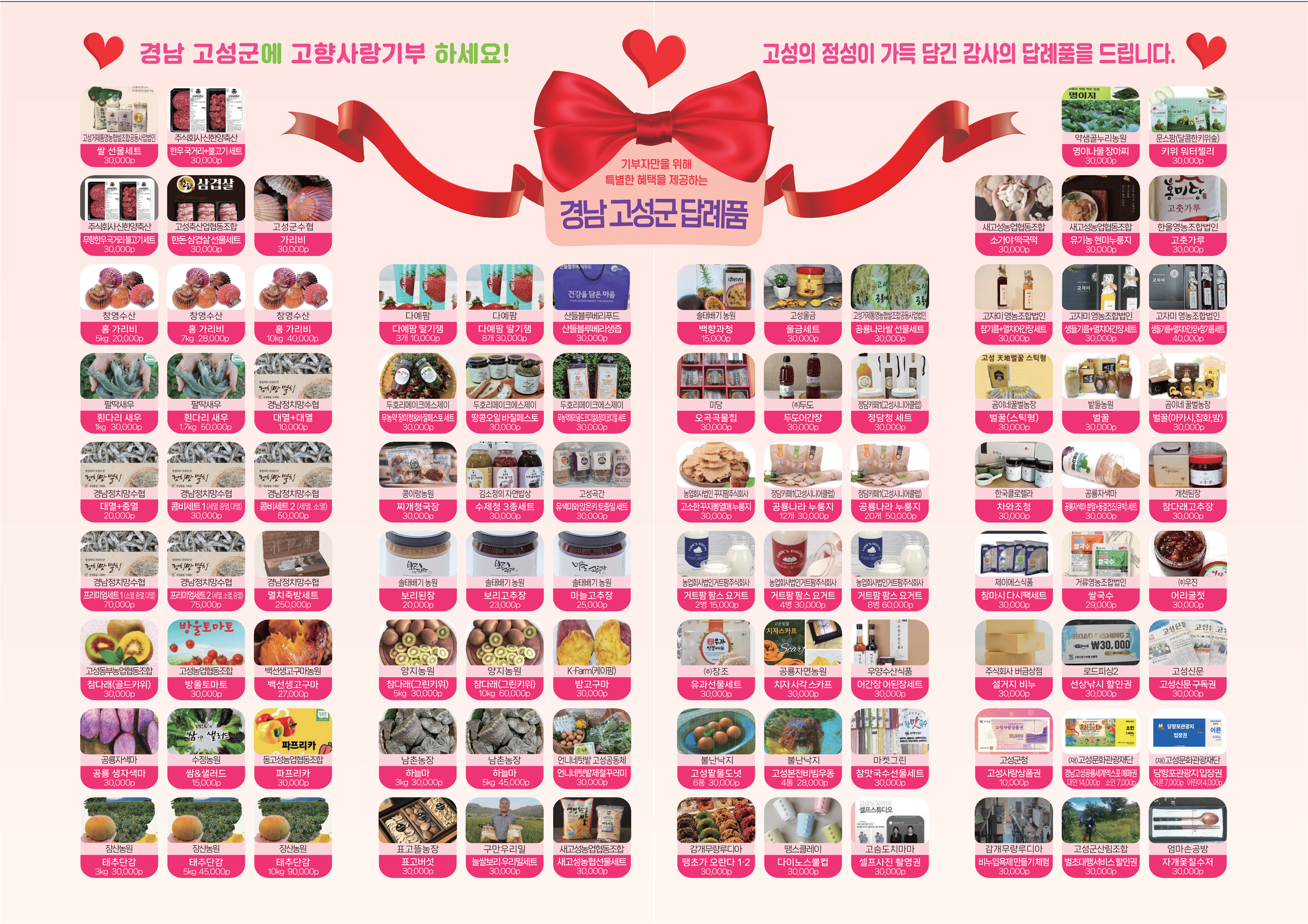 2026년 경남 고성군 고향사랑기부제 답례품 추가 선정 알림 및 홍보